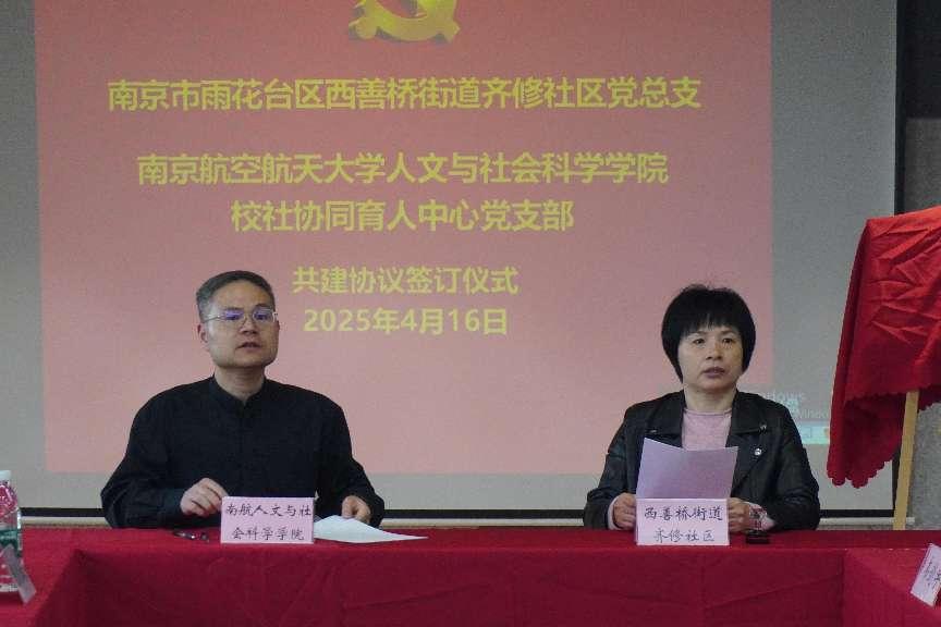 随后,公司校社协同育人党支部与西善桥街道齐修社区签订了合作共建协议,共同推动组织联建、资源共享。